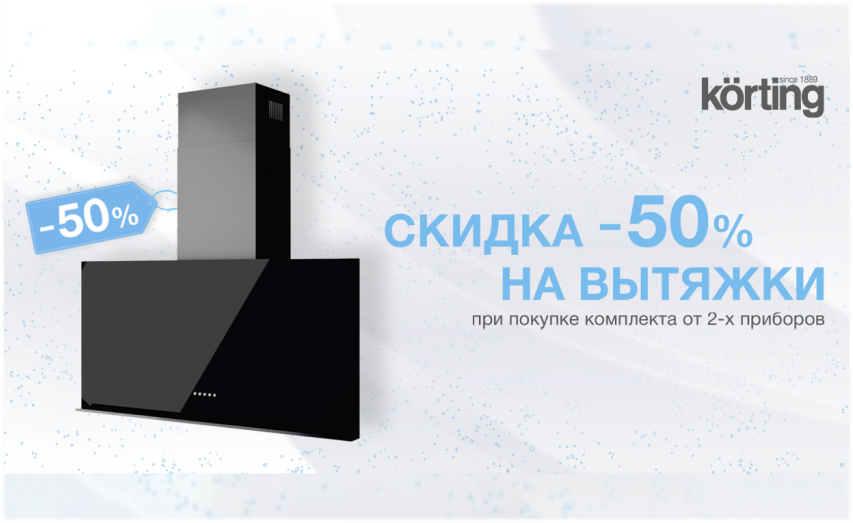 С 9 по 31 января 2023 года компания KÖRTING сообщает о старте акции на комплекты!При покупке комплекта техники от двух приборов, предоставляется скидка 50% на вытяжку.