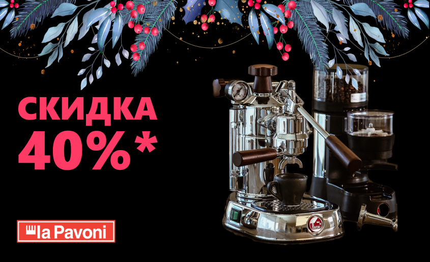 В период с 12 декабря по 28 декабря 2022 года при заказе комплекта бытовой техники La Pavoni, состоящего из любой кофемашины (LPS*******, LPM********, LPL *******) и кофемолки (LPG*******), на прибор с наименьшей ценой в заказе предоставляется дополнительная скидка 40%.